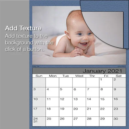 If you’d like to add a little flair to your calendar then change the background color. It’s easy to do. Just select any color - even one sampled from the image - and with a simple click of one action your background is changed.